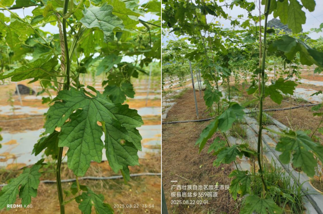 由上图可知,施用萌帮®普利纳®肥料方案的苦瓜长势更加健壮、茎秆粗。